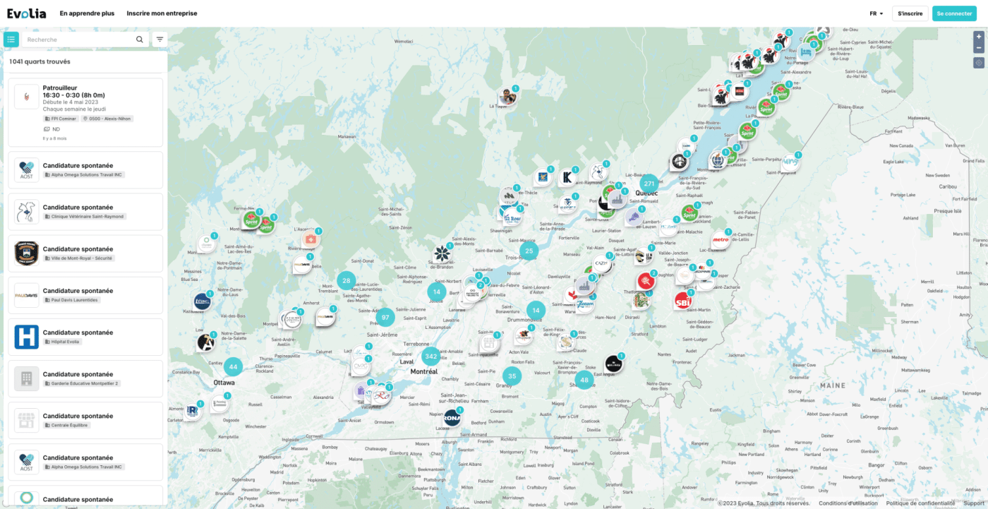 Pour commencer, rendez-vous sur la Carte des Quarts en ligne pour voir quels postes sont disponibles près de chez vous. Une fois que vous avez trouvé des quarts de travail qui vous intéressent, créez un compte Evolia gratuitement pour pouvoir postuler.
